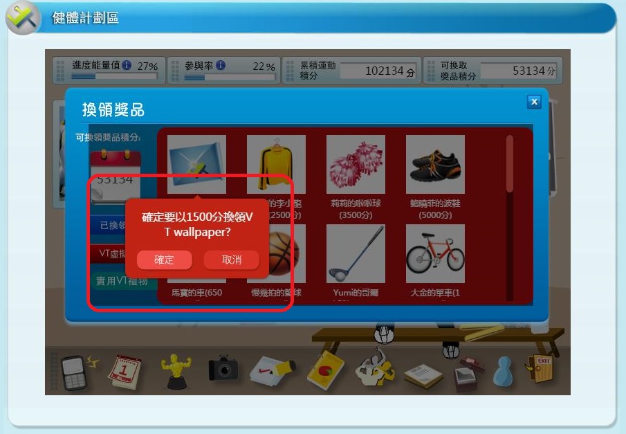 3. 到「健體計劃區」的「換領獎品」部份。獎品分為「VT虛擬獎品」和「實用VT禮物」。