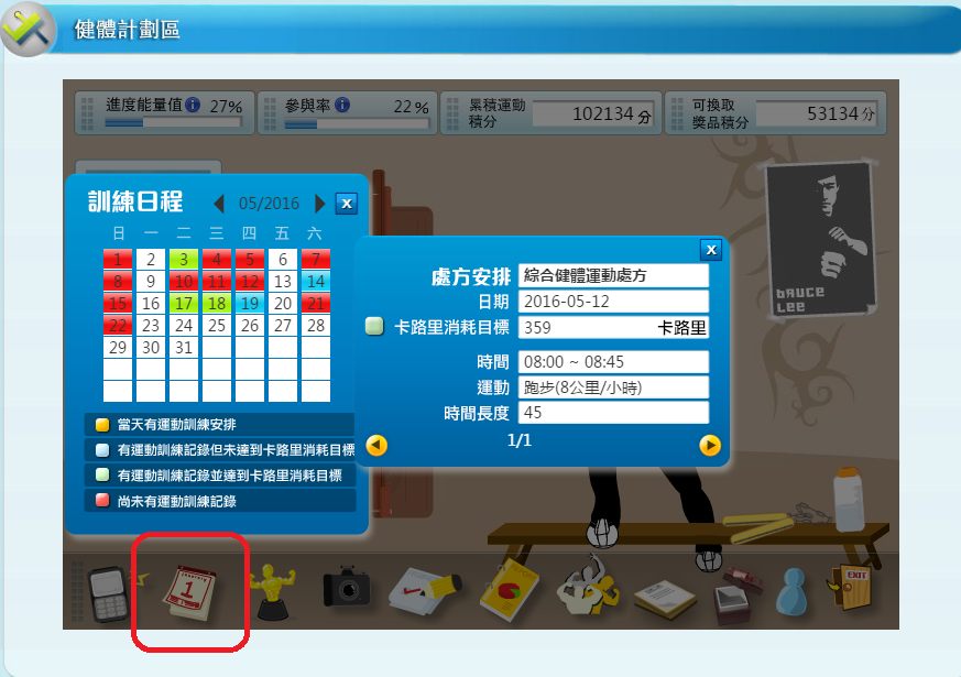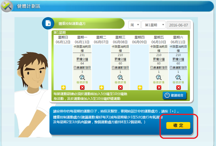 1) 「健體計劃區」的「訓練日程」