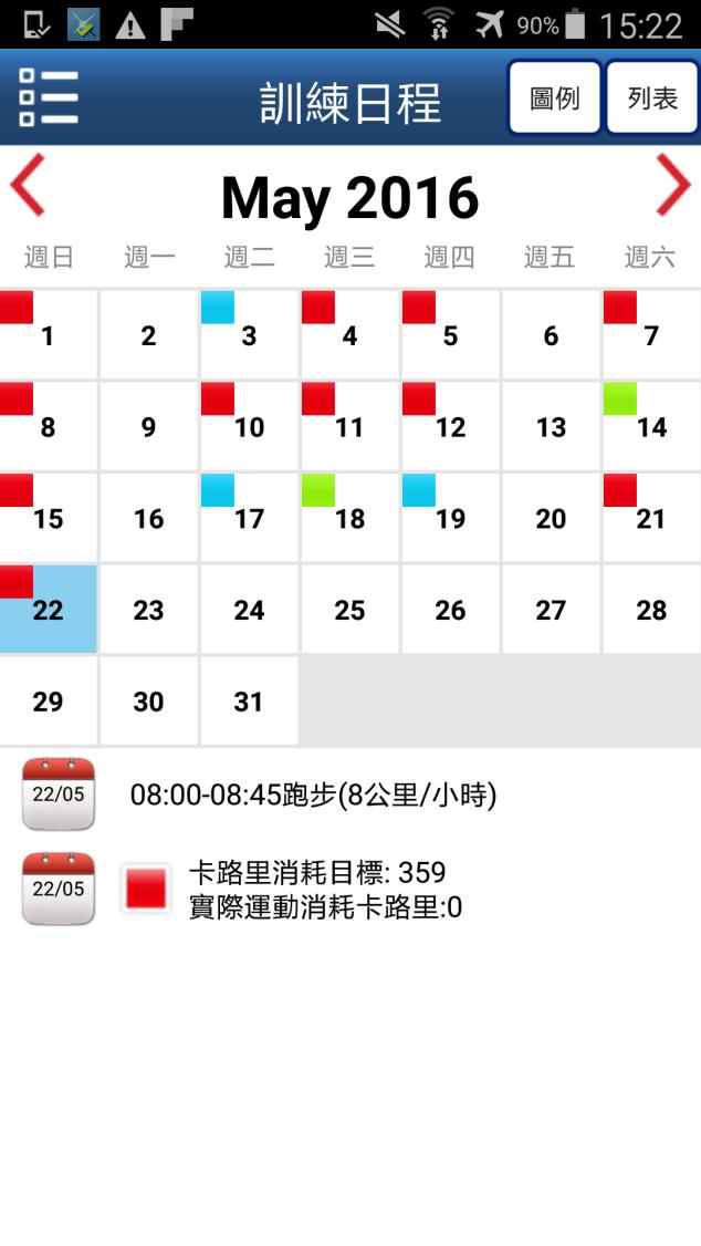 或 2) 「虛擬教練」手機程式的「訓練日程」 (處於「健體日誌」)。