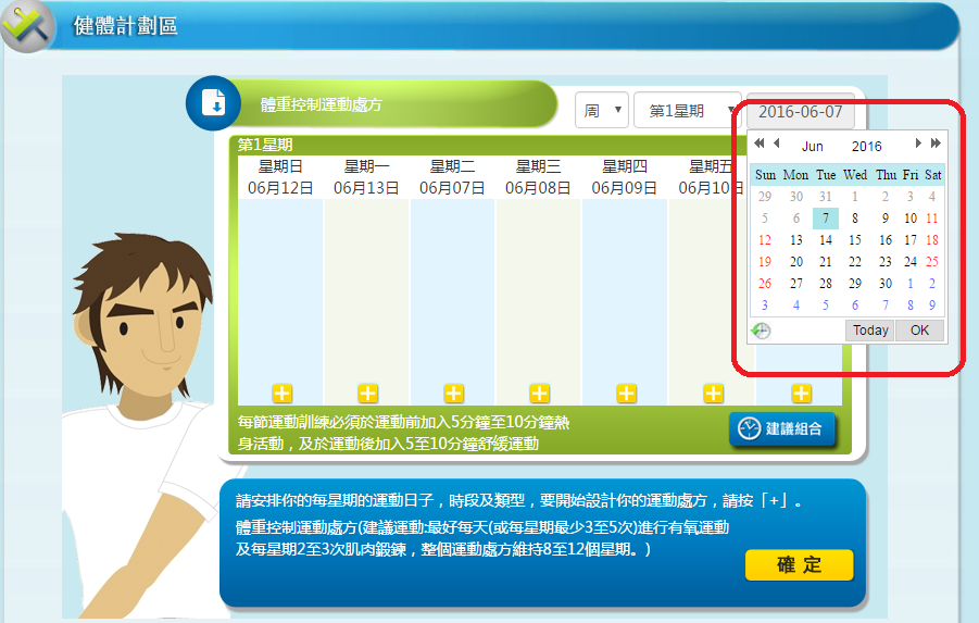 3. 選擇運動處方的「開始日期」