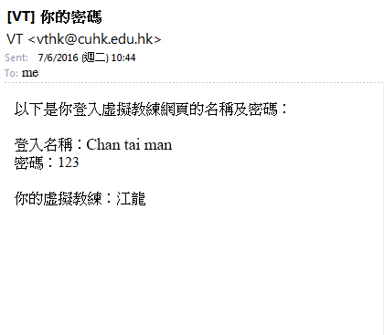 3. 到登記電郵地址信箱查看「你的密碼」郵件。