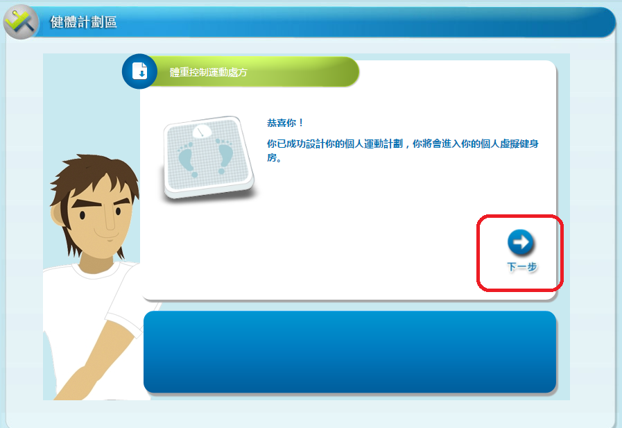 1. 閱讀建議「運動處方」後,按「下一步」。