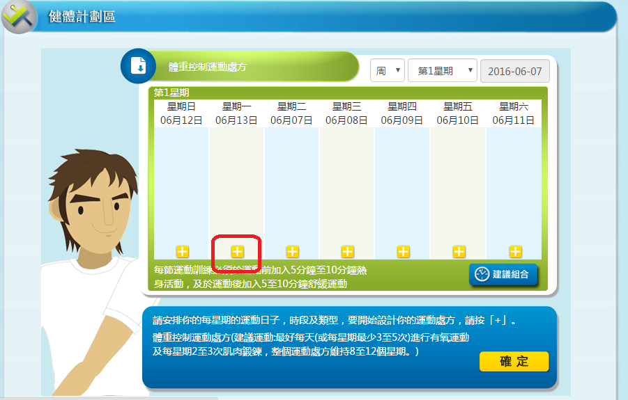 1) 「健體計劃區」的「訓練日程」